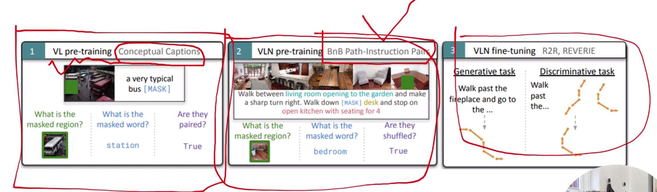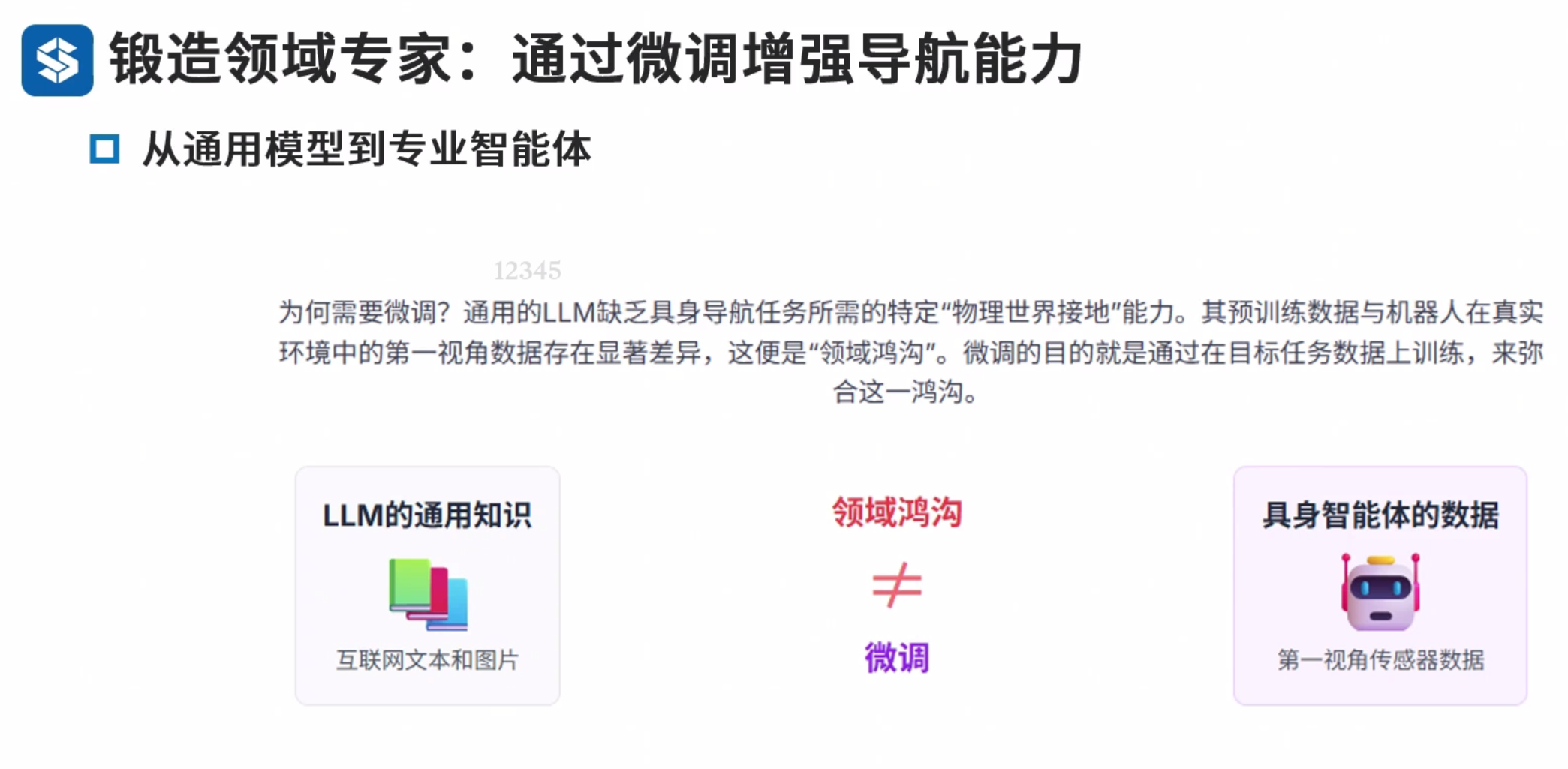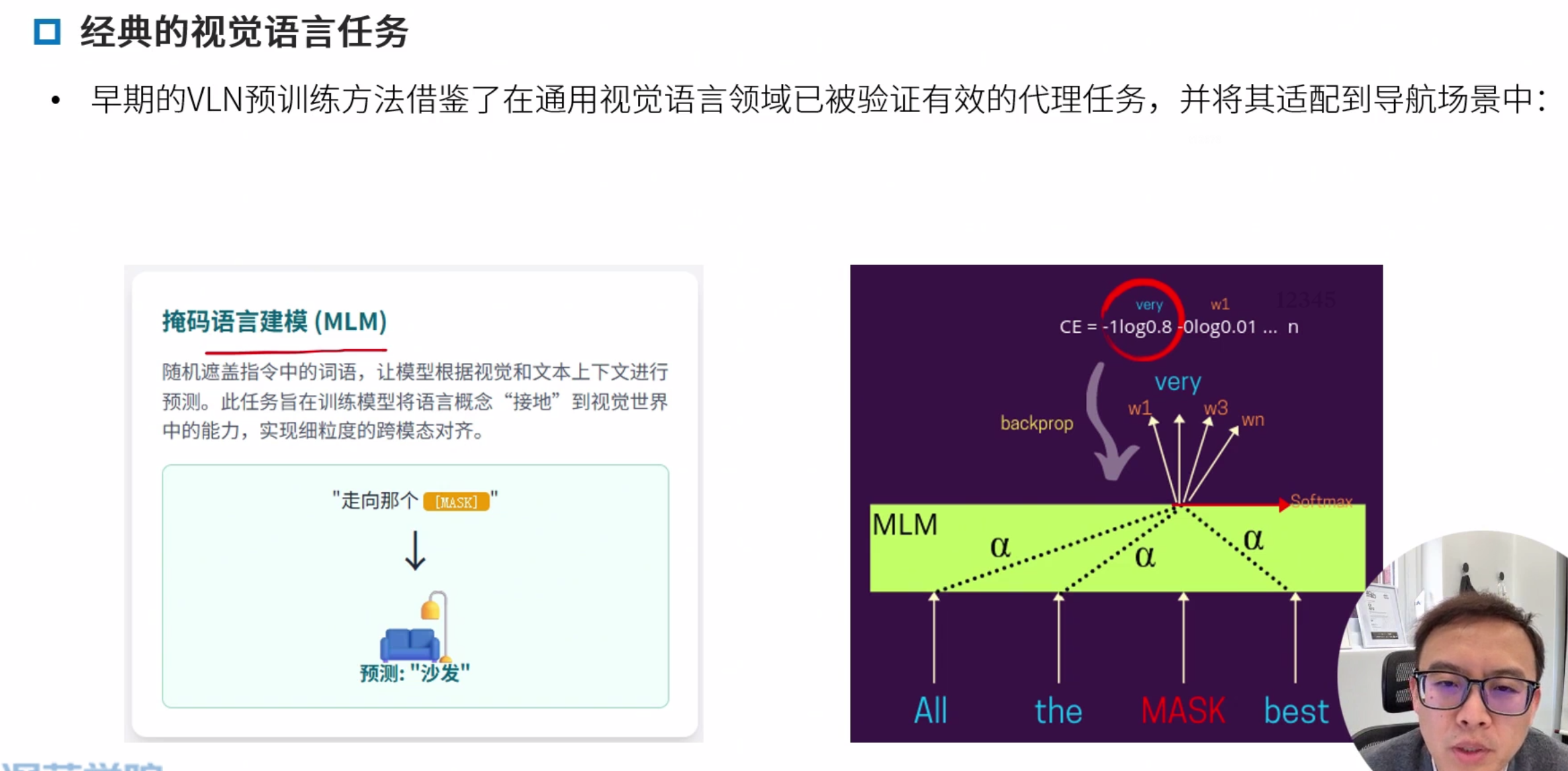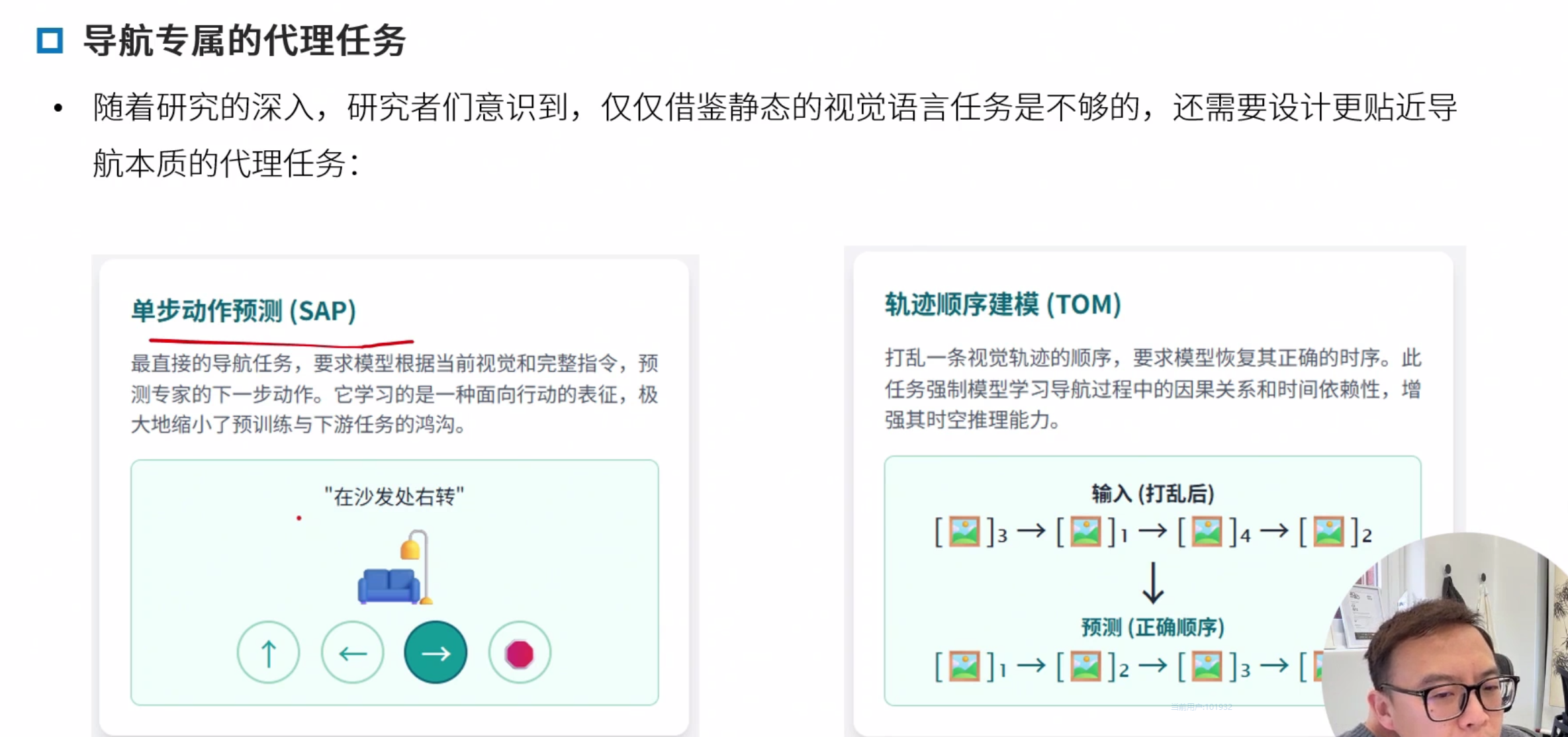 领域内与领域外预训练 领域内:类导航数据,优点任务相关性强,直接服务导航,缺点,早期数据集规模小,成本高 领域外:使用图文对(如网页图片)。优点 数据规模大 多样性高,缺点,与导航任务差异大,缺乏时序和动作信息。
